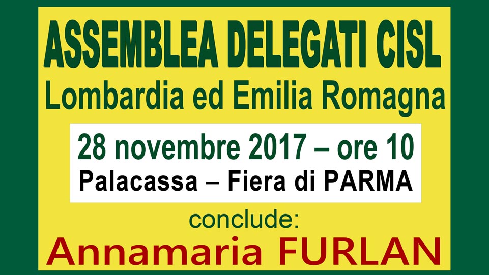 La Fnp Cisl pensionati Milano Metropoli partecipa alla Assemblea dei Delegati convocata martedì 28 novembre 2017 ore 10 presso il PALACASSE – FIERA DI PARMA.